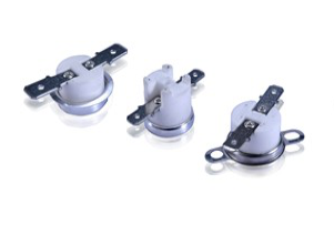 帶外殼的雙金屬片溫控器;單刀單擲,工作于阻性負載下。廣泛應用于咖啡壺、飲水機、多士爐、微波爐、電暖器、便攜式冰箱等多種小型家電中作為溫度控制或溫度保護之用,是加熱類小家電中的重要器件。
